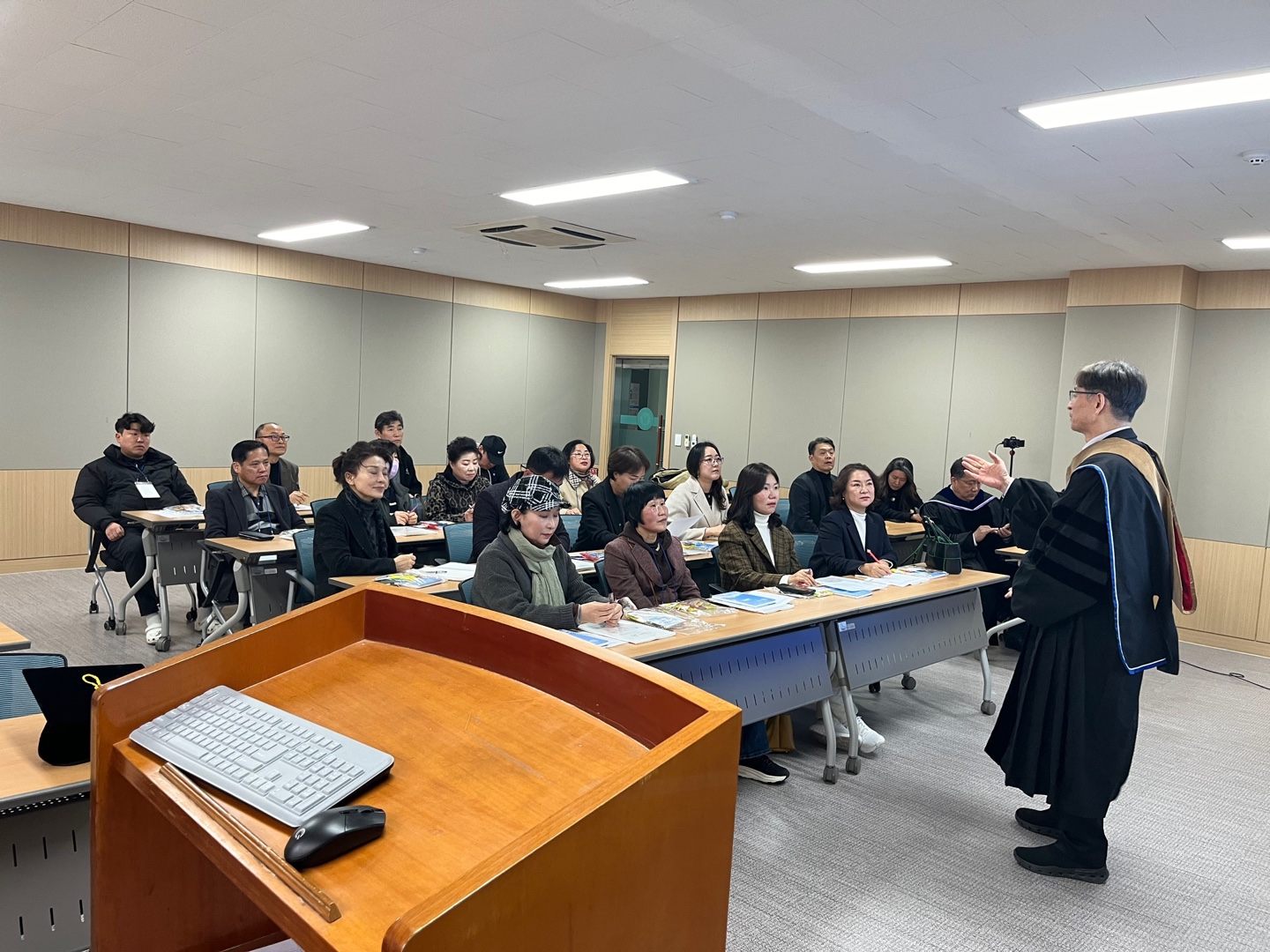 2024학년도 입학식이 2월29일(목) 11:00에 본교 대강당에서 개최되었습니다. 생업으로 바쁜 와중에도 많은 성인학습자 신입생들이 입학식에 참석해서 다시 스무살로 돌아가 대학 신입생이 된 기분을 만끽했습니다. 입학식 후 대학사무실에서 간단한 오리엔테이션과 함께 새로이 준공된 골프연습장 등 실습실들을 둘러보고 점심식사를 하였습니다.  미래라이프융합대학 새내기들의 입학을 다시한번 축하드립니다~~~!!!!!
