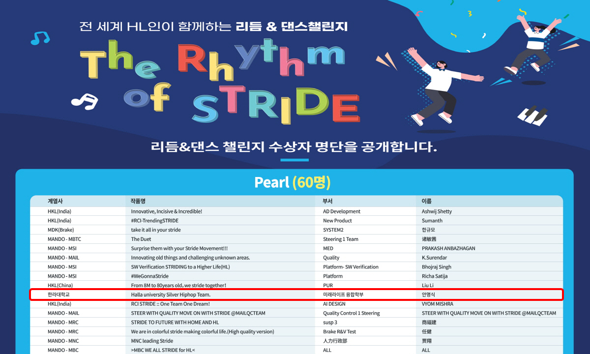 "리듬 & 댄스 챌린지" 대회 Pearl상 수상