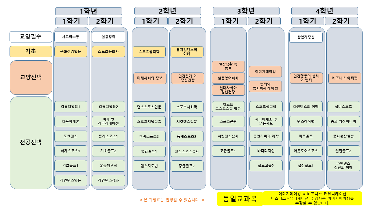 2023학년도 미래라이프융합학부 교과과정입니다.