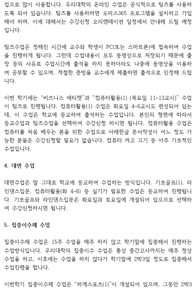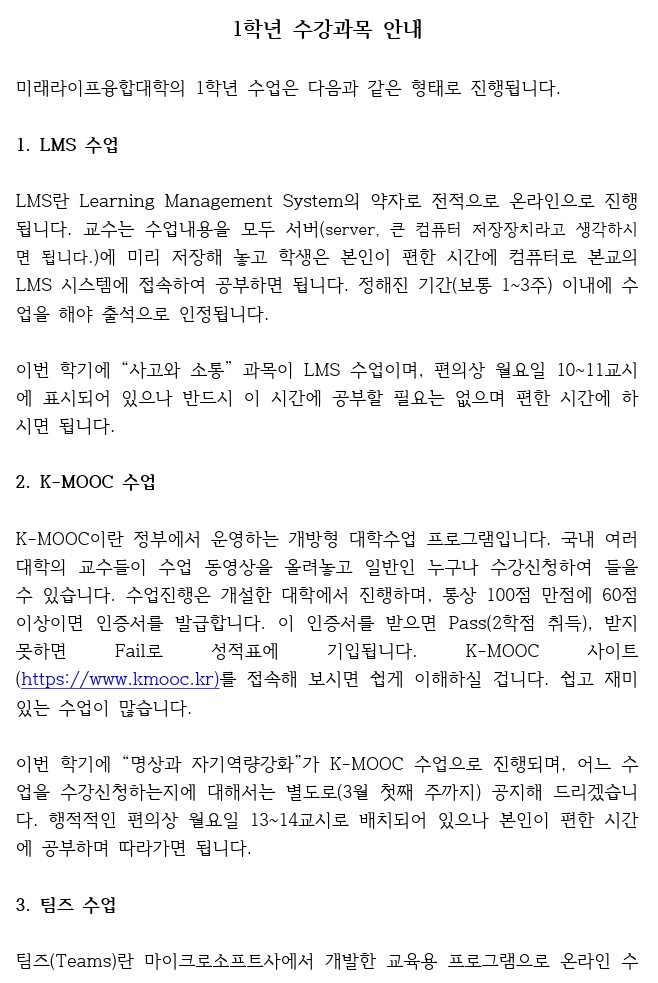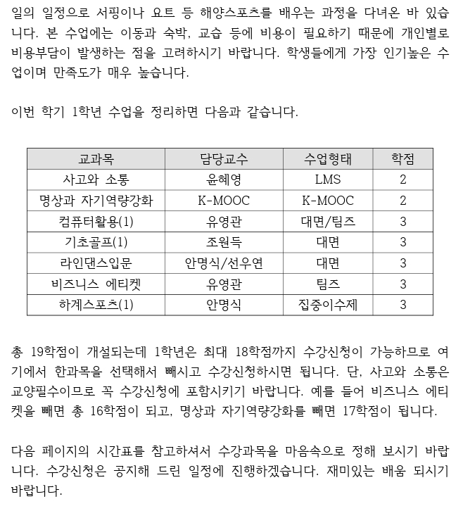 (신입생) 수업방식과 교과목 안내