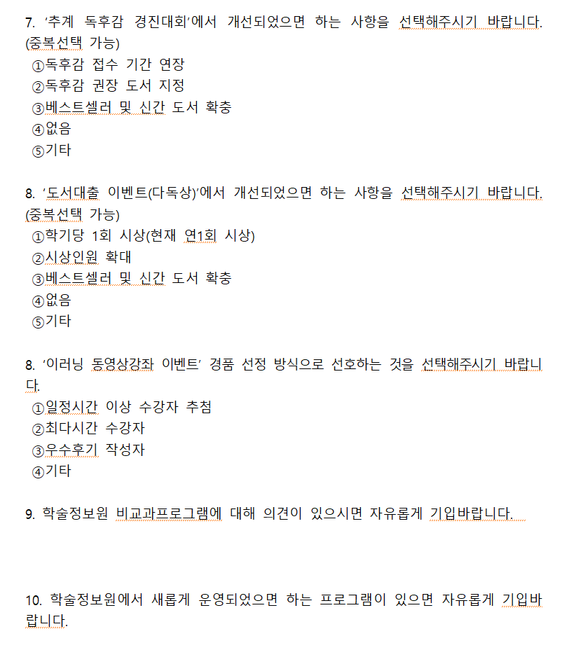 학술정보원(도서관) 비교과프로그램 사전 수요조사