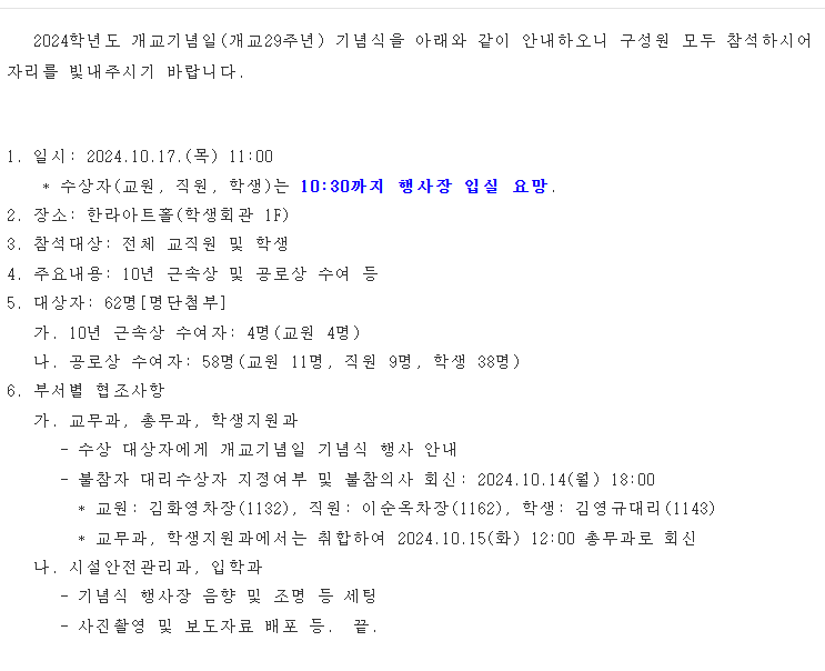 2024학년도 개교기념일 기념식 개최 안내