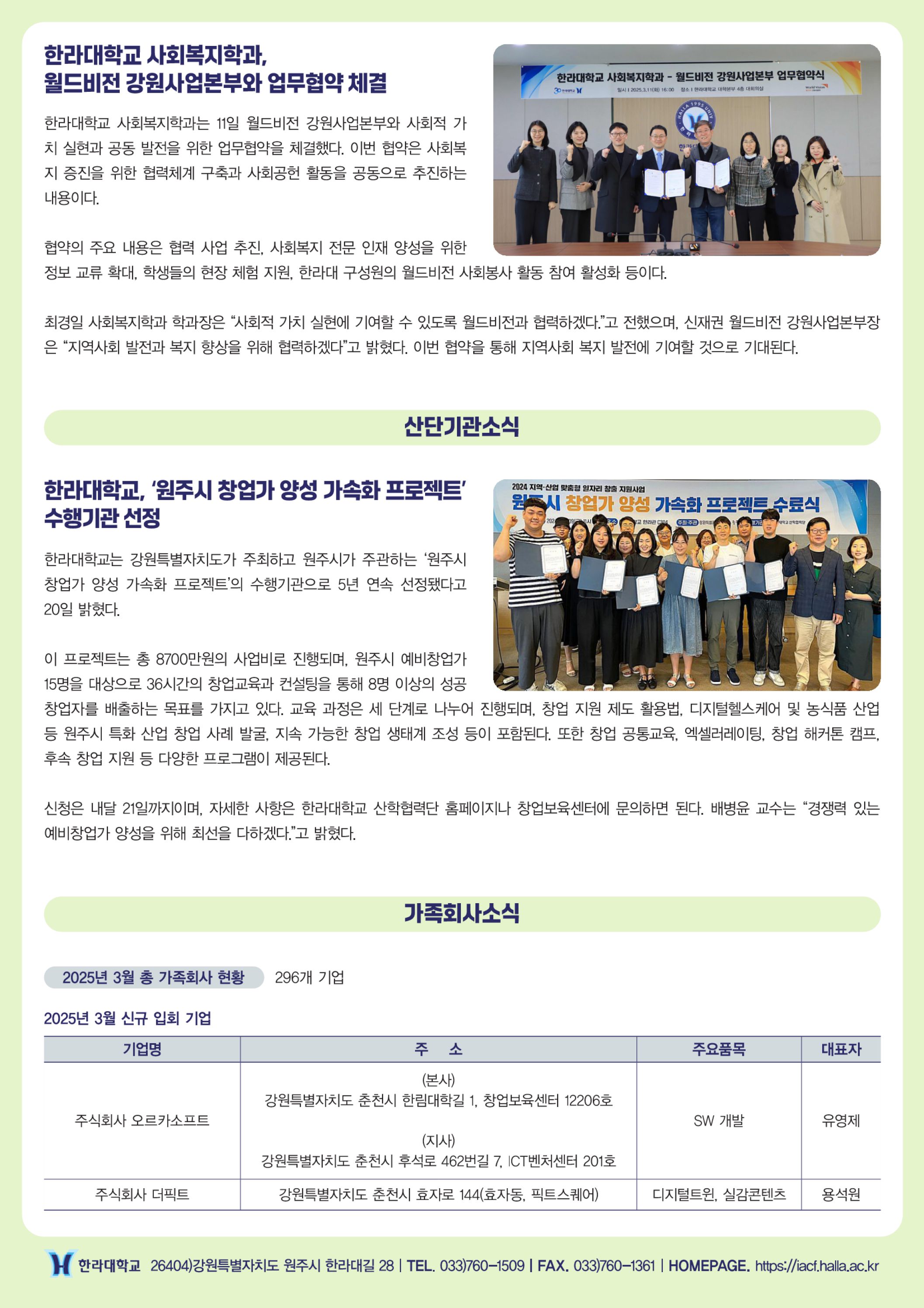 2025년 3월 한라대학교 산학협력단 뉴스레터