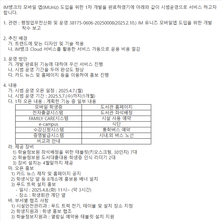 iM 유니즈 모바일앱 시범운영 안내