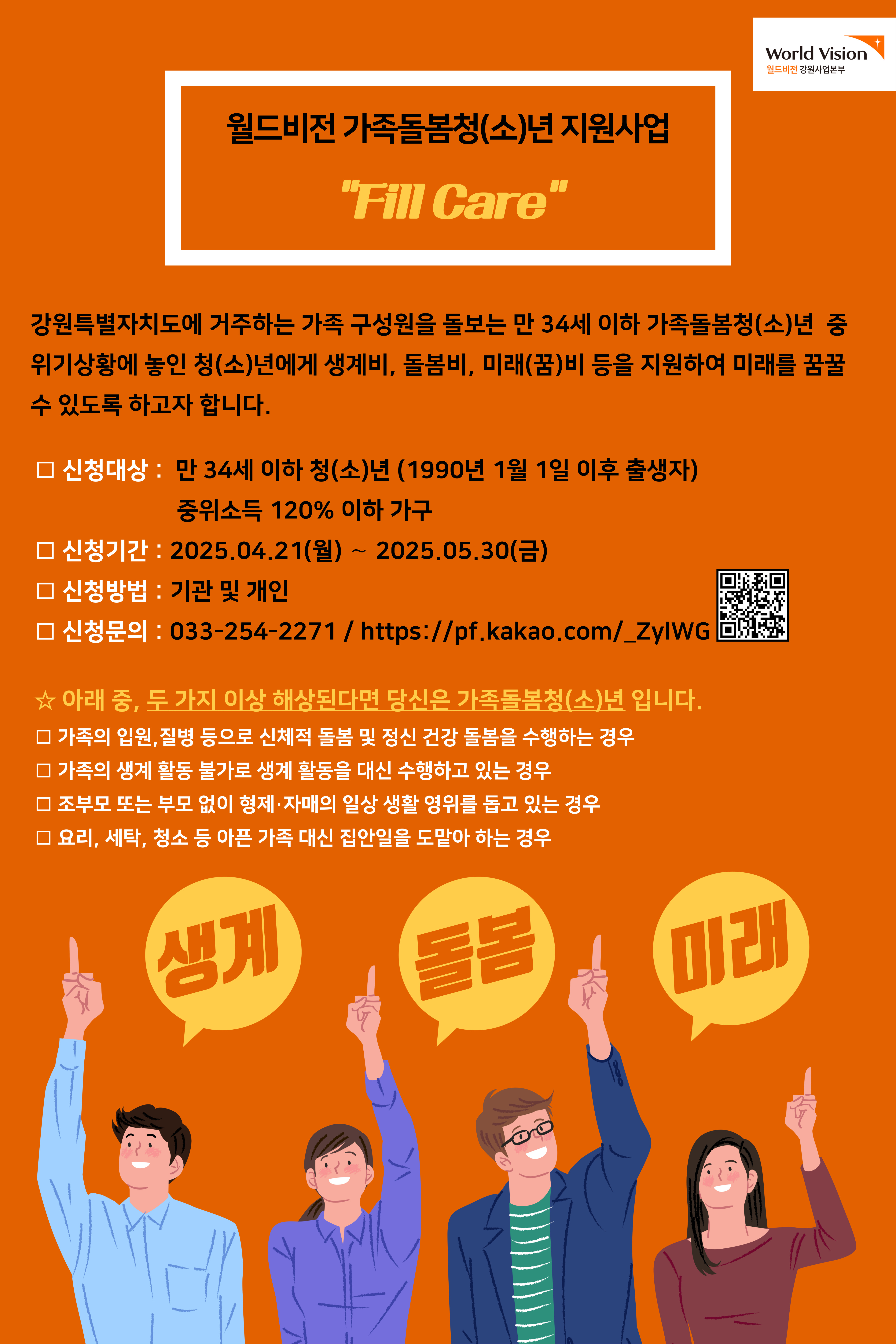 월드비전 가족돌봄청년 지원사업 대상자 신청 안내